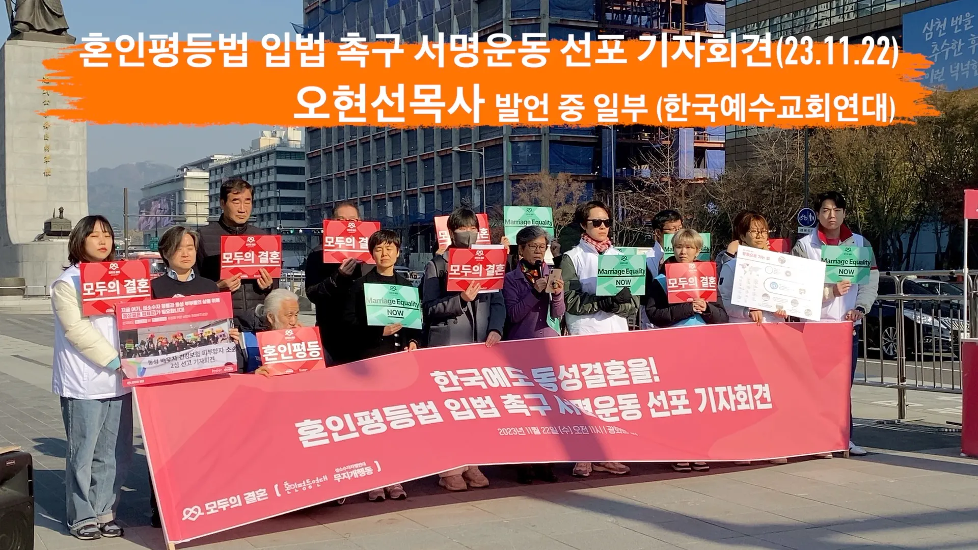 23.11.22 혼인평등법 입법 촉구 서명운동 선포 기자회견 오현선목사 발언